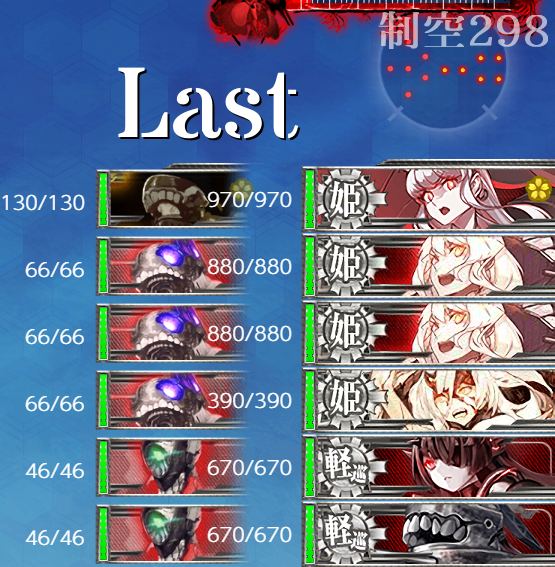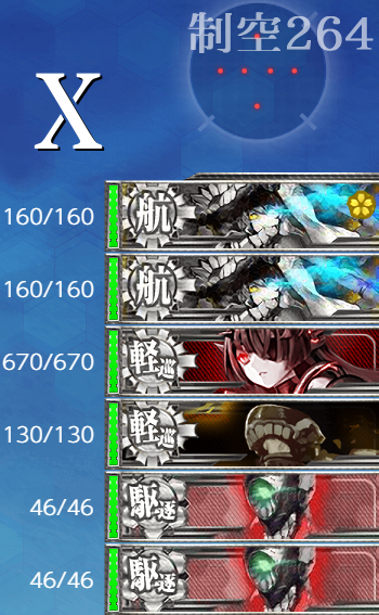同航ではありましたが、タッチ不発、空母は開幕で動けなくも割れたので破砕はいらなそうです