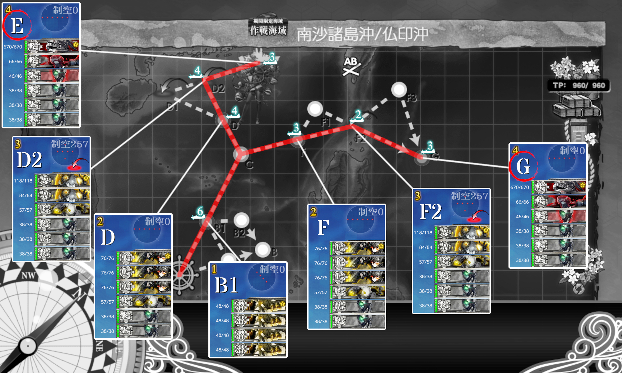 さて、とりあえずルートは解放して運び始めます。E4-3とE5後半二つが大変そうですねぇー・・・。