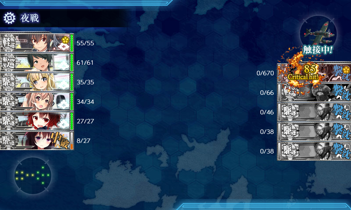 2025年11月10日 23:00 2025秋イベ #E4-1甲[海域拡張]【野埼の遭難】 カテゴリ:onlineGAME艦隊これくしょん コメント数:コメント(4) #E4-1甲海域拡張さてさて後段作戦が始まりましたがまずは恒例の海域拡張から(。・Д・)ゞ [空襲]航空優勢↑×2EマスS勝利×2:[欧州遠征収容艦隊][ナルヴィク先遣隊][ナルヴィク防衛主隊][ナルヴィク駐留艦隊]GマスS勝利×2:[欧州遠征収容艦隊][ナルヴィク先遣隊][ナルヴィク防衛主隊][ナルヴィク駐留艦隊]BマスS勝利×2:[欧州遠征収容艦隊][ナルヴィク先遣隊][ナルヴィク防衛主隊][ナルヴィク駐留艦隊][ナルヴィク先遣隊]札+[ナルヴィク防衛主隊]札+[ナルヴィク駐留艦隊]札3種のお札も出撃出来て新しくお札が付く場合に[欧州遠征収容艦隊]札が付く感じだと思います。長くなるので今後は[欧州遠征収容艦隊]札だけの表記になるかも。 手順1手順2海域拡張←Click切替 E,GマスS勝利×2+[空襲]航空優勢↑×2 まずは『E,GマスS勝利×2+[空襲]航空優勢↑×2』。お札も流用出来ますし特筆する点はないかな? 編成(水上打撃部隊)/[欧州遠征収容艦隊][ナルヴィク先遣隊][ナルヴィク防衛主隊][ナルヴィク駐留艦隊]▼Click 編成ナルヴィク札が付いた艦で適当に(・◇・) 最初に"駆逐"4編成で出撃したら空襲戦(D1)が増えたので"駆逐"5は必要っぽい? ただし"駆逐"6↑にすると初手Aマスの方向へ行くっぽいので注意。 ※[戦艦3↑]or[正空1↑]or[駆逐3↓]or[駆逐6↑]のいずれかを満たすと初手Aマスに分岐するみたい? 制空値適当で大丈夫だと思いますが一応空襲戦(D2,F2)で航空拮抗が取れる制空値172↑を目安に。 お札[欧州遠征収容艦隊][ナルヴィク先遣隊][ナルヴィク防衛主隊][ナルヴィク駐留艦隊] サブ「Washington」「Bismarck」「Langley」「日進」「Gotland」「天津風」「矢矧」「最上」「Fletcher」「Johnston」 基地航空隊 第一航空隊:【D,Fマス】に集中。必要行動半径は【4,3】 第二航空隊:【E,Gマス】に集中。必要行動半径は【3,3】 第三航空隊:【防空】。 道中も何ならE,Gマスも不要かなとも思いましたが一応送っておきました。 画像は1枚ずつですが2回ずつやってます。([空襲]は正確には4回……。) BマスS勝利×2 次は『BマスS勝利×2』。[#E4-1]本攻略もこの√を通るので攻略編成を考えて逆算すると吉。 と言ってもナルヴィク札が付いた艦娘をどう組み合わせるかを考えるだけになりそうですが(・◇・) 編成(水上打撃部隊)/[欧州遠征収容艦隊][ナルヴィク先遣隊][ナルヴィク防衛主隊][ナルヴィク駐留艦隊]▼Click 編成"駆逐"6↑が初手Aマスの条件っぽいので先の手順編成から「Gotland」→「玉波」に。 あとは潜水戦がないので"駆逐"に[主砲]とか載せましたが恐らくそのままでも充分(・◇・) 制空値一応空襲戦(A)で航空拮抗が取れる制空値172↑を目安に。 お札[欧州遠征収容艦隊][ナルヴィク先遣隊][ナルヴィク防衛主隊][ナルヴィク駐留艦隊] サブ「Washington」「Bismarck」「Langley」「日進」「天津風」「矢矧」「最上」「Fletcher」「Johnston」 基地航空隊 第一航空隊:【Bマス】に集中。必要行動半径は【6】 第二航空隊:【退避】。 第三航空隊:【防空】。 一応1部隊だけBマスに。 海域拡張これでボスマスとそこに続く航路が出現するので[#E4-1]本攻略開始になります(。・Д・)ゞ タグ :#艦これ#艦これイベント#2025秋イベント#後段作戦#海域拡張 艦隊これくしょん(艦これ)ランキングに参加しています。クリックして頂けると励みになります(。・Д・)ゞ 「onlineGAME」カテゴリの最新記事 コメント コメント一覧 (4) 1. ナナシの提督 2025年11月11日 21:00 Gマス方向ですが、低速艦隊だとF3の潜水空襲マスを通りました。 (Eマス方向は未確認) 0 naru がしました 2. レイ 2025年11月11日 22:00 攻略更新お疲れ様です。 とりあえず秋刀魚をやっていました。今年も3-3がおすすめっぽい?6-5下も3連続で出ることもありましたが体感的に枯れるのが早いかも。日をまたいだらちょっと復活してましたが。1-4、1-5、3-3、6-5、7-4で必要数は集まる感じかな。3-2も良いかも? さて、とりあえずルートは解放して運び始めます。E4-3とE5後半二つが大変そうですねぇー・・・。 0 naru がしました 3. 通りすがりの提督 2025年11月20日 18:57 お疲れ様です 初手Aマス空襲ですが駆逐5でも行きました 正規(装甲)空母1だとそちらに行くみたいですね(自分はアーク+日進で行きましたので) 0 naru がしました 4. naru 2025年11月20日 22:15 >>1 低速が必要だったり低速okな場合はそれに触れるようにしているので逆にそれらの表記がない場合は基本的に高速統一という形で記事にしています(。・Д・)ゞ >>2 「秋刀魚」を集める海域は好みが出るので一概には言えませんが今年はイベントと並行する形になりましたし例年よりは集める数が減りそうな気がします(・◇・) >>3 改めて調べてみたら"戦艦"3↑or"正空"1↑or"駆逐"3↓or"駆逐"6↑のいずれかを満たすと初手Aに進むようですね。 ここは流用札なので特に深く考えてませんでしたがちょっと不思議な分岐条件かも知れません。 0 naru がしました コメントフォーム 名前 コメント 記事の評価 リセット リセ
