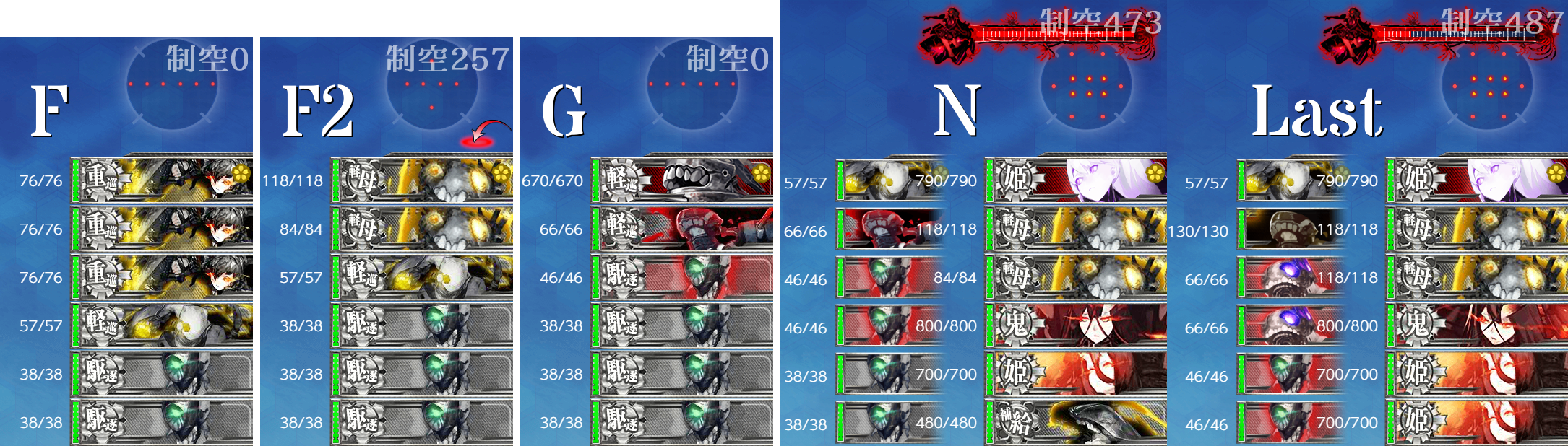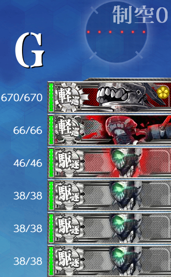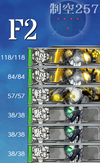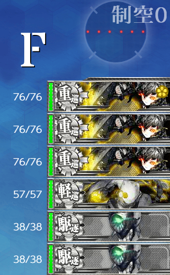- 編成 選べるなら水上打撃部隊編成が好みなので"軽空"2の水上打撃部隊編成。