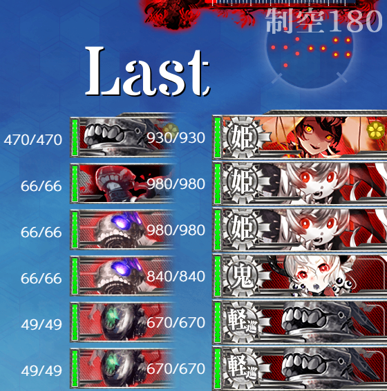 64戦隊の投入でラスダン含めて制空権確保できていましたが、軽空母では艦載機が残っててどうにか割合削りに貢献って感じでした