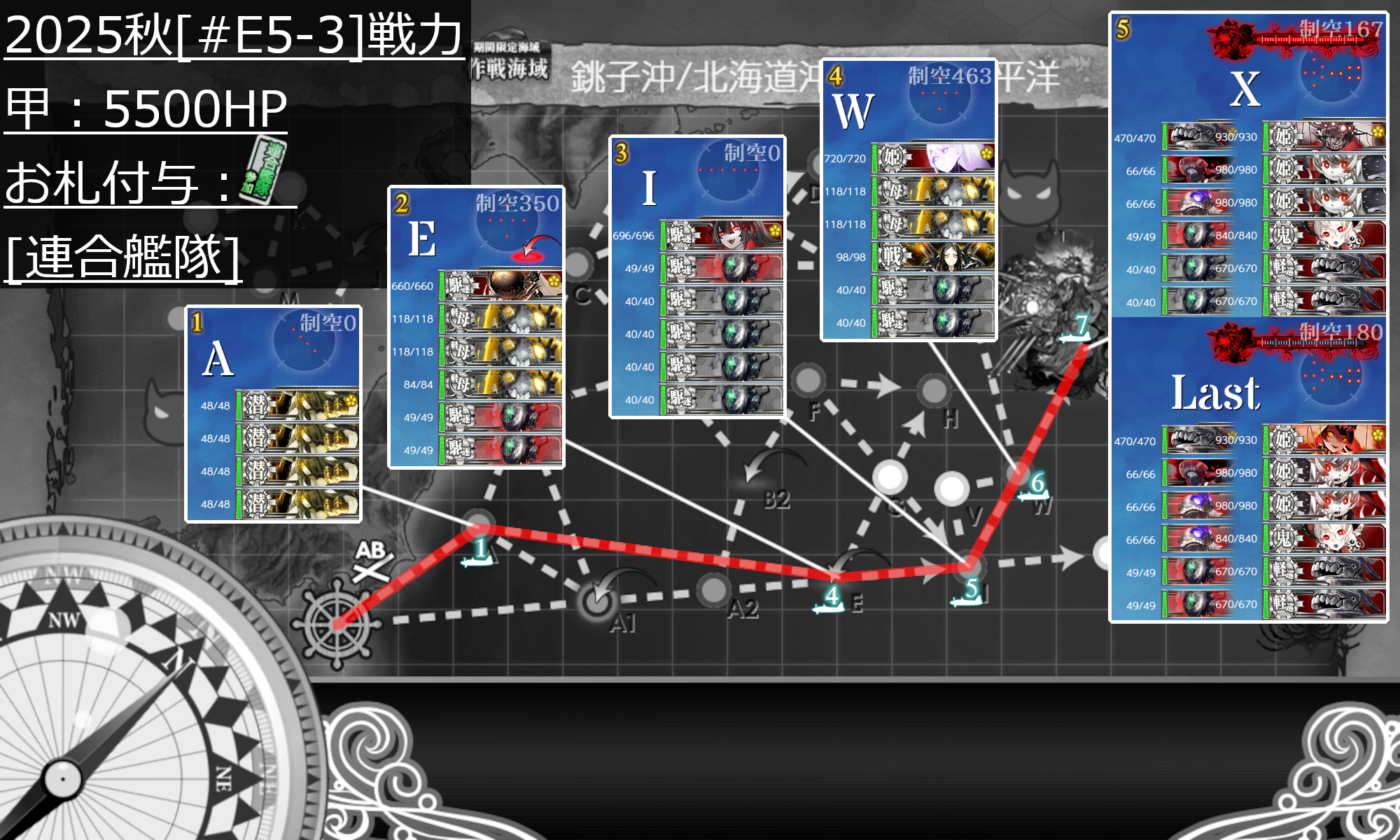 本来は海域拡張を挟むんですが[#E5-3]札(連合艦隊)でのZZマス到達法が確立されているのでとりあえずそのまま。