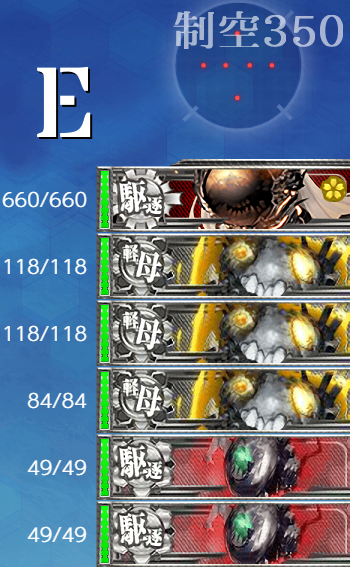 とにかく空母がボスで置物になることが多く、最初の空襲マスで優勢に調整してボスで軽空母が動ける