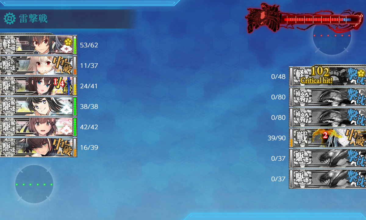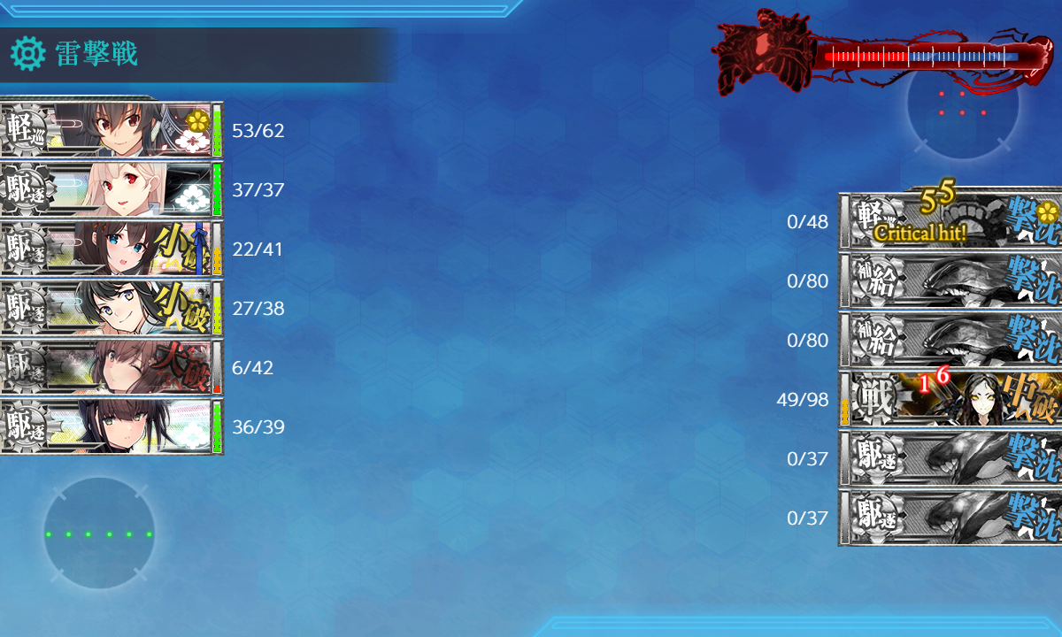 T字不利ということで昼戦で終わりませんでしたが被弾したのは夕立ぐらいなのでまぁ。