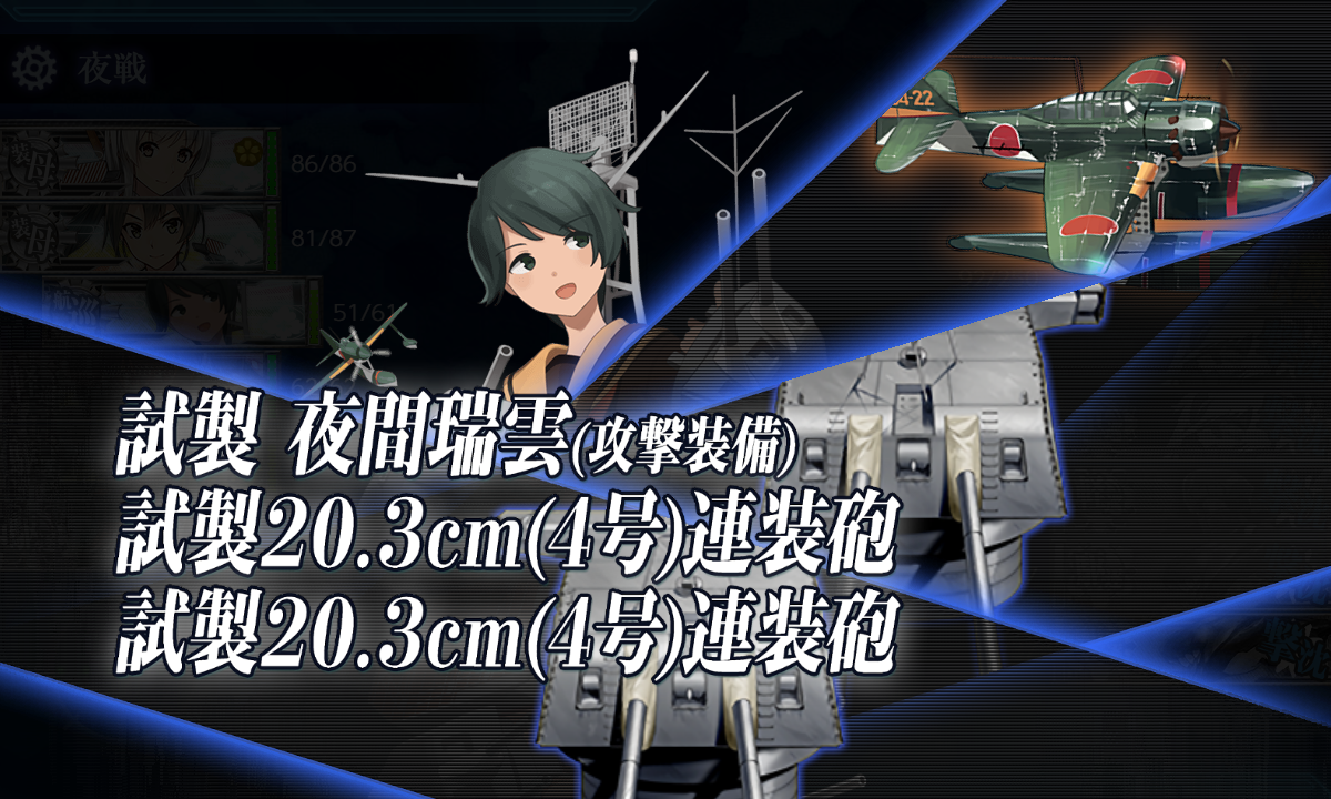 - 「天山一二型甲★4×2」/「熟練搭乗員×4」/「12cm30連装噴進砲★6×2」