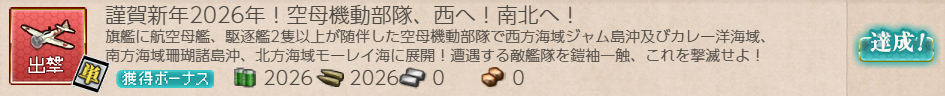 【新春】任務4個目はこんな感じでした。中盤海域が指定されましたが難易度的には問題ないかな?