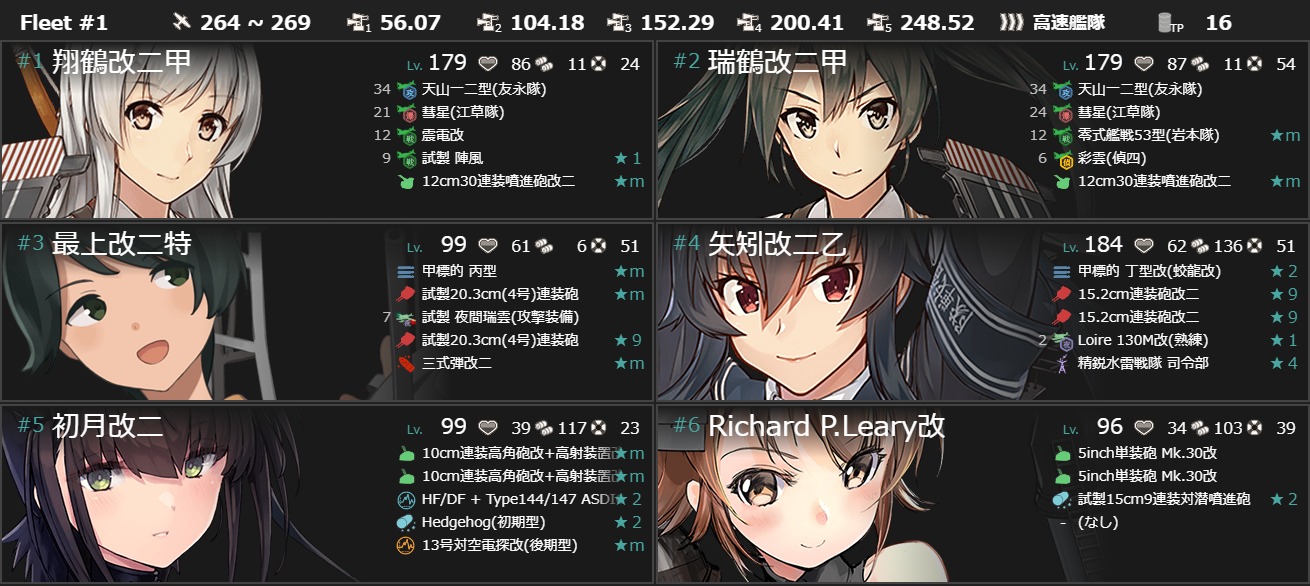 - 制空値&索敵値 [#5-2]ボス到達時に制空値176↑あれば航空優勢が取れて他の戦闘でも航空優勢↑が取れるのでそこを目安に。