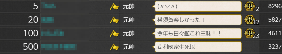 上位狙いの提督だと【節分】任務の特別戦果を1月に加算した提督もそこそこいるんじゃないでしょうか?