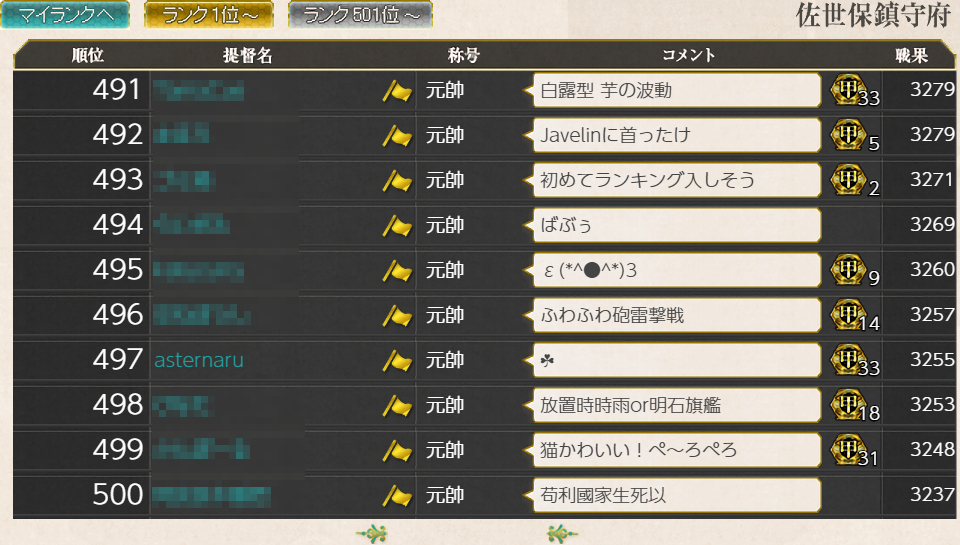 最終更新で497位ということで結構怪しい……一応最終日も戦果を稼ぎましたがボーダー付近の提督次第では……。
